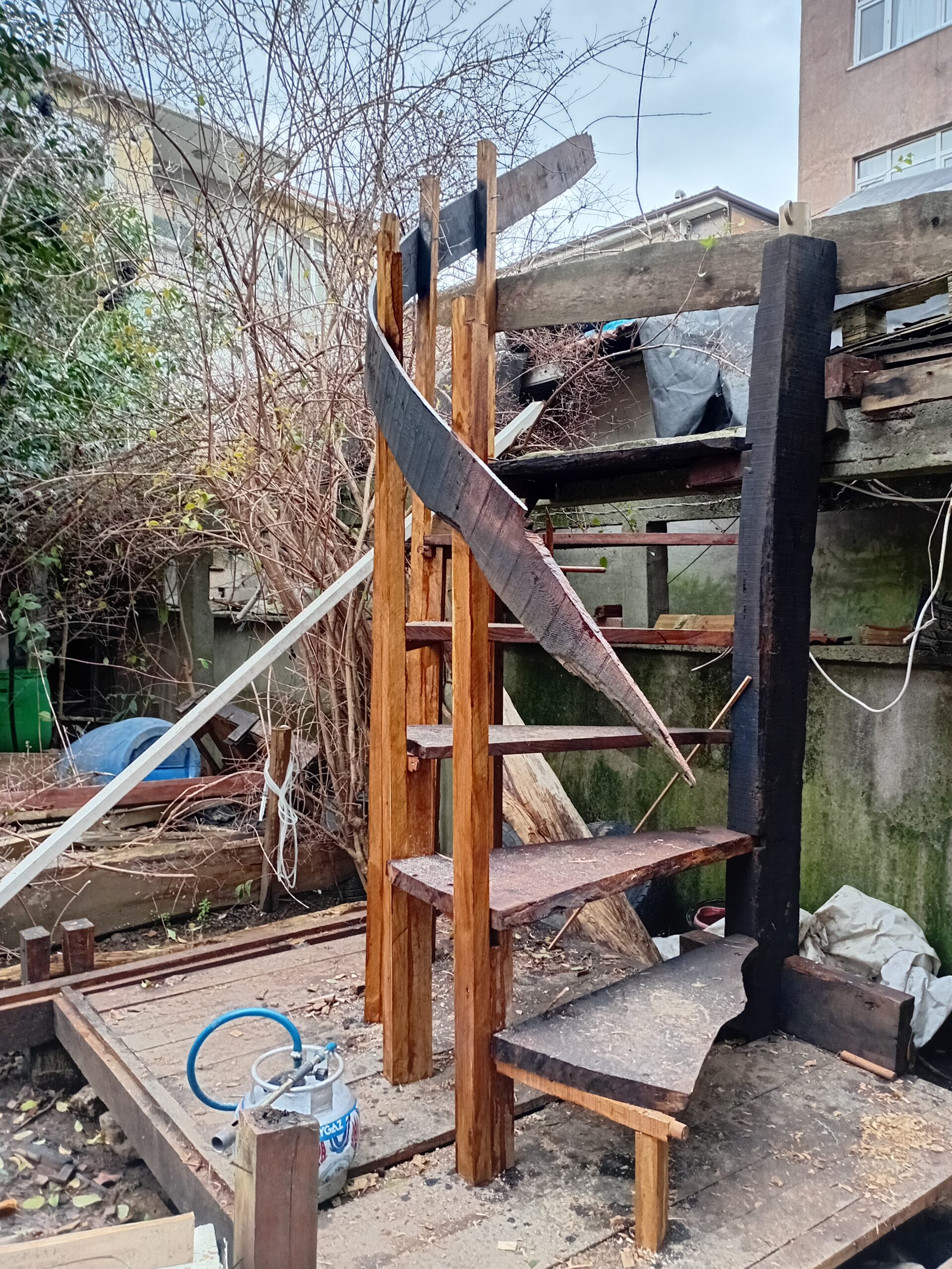 Sac ve betopandan mamul merdivene ceviz kaplama işi. 17 basamak.