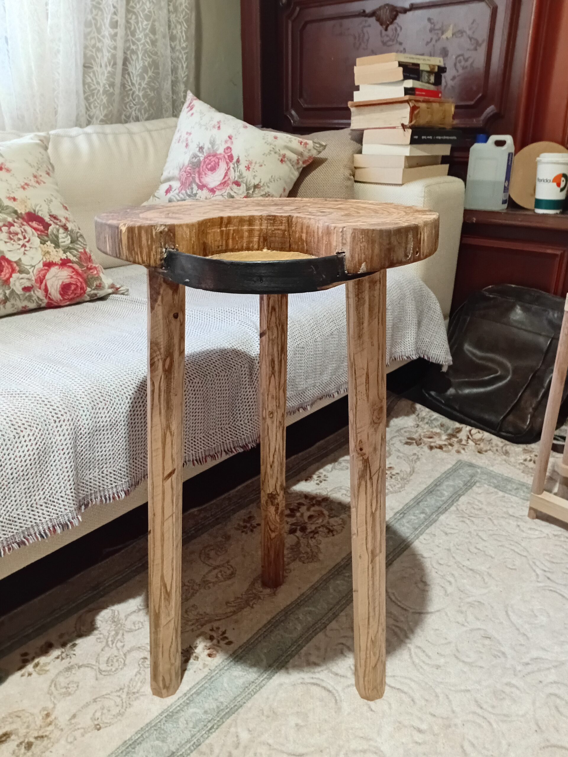 Etekleri bambu örgüsü sehpanın bacakları… sedir ağacından. Bacaklara iki kademe kavis kazandırıldı. Bu amaçla ateşle tavlandılar. Kavis kararlaması için kalıp üstünde işkenceye alındılar. Sıcak su içinde ıslatıldılar, işkencedeyken soba yanında kurutultular.